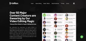 Influx Digital Media provides video editing aligned with marketing and branding goals. Their services are designed to support lead generation and brand awareness on YouTube.